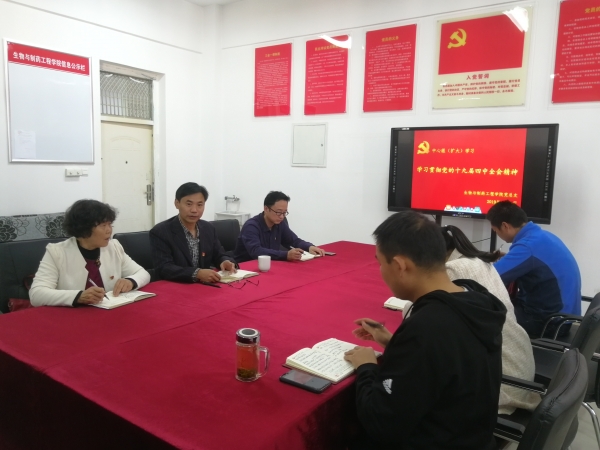11月5日下午,生物与制药工程学院召开了中心组(扩大)学习会,专题学习党的十九届四中全会精神,我院中心组成员、各党支部书记参加了会议。