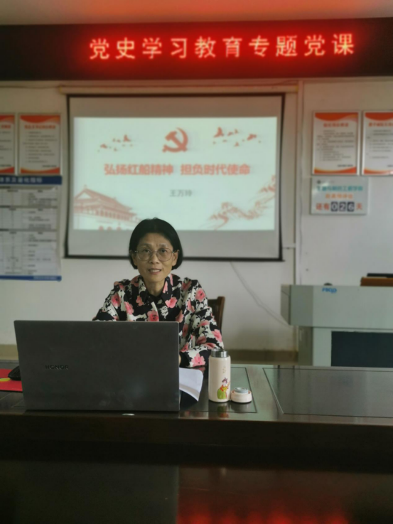 王万玲从“红船精神的提出、红船精神的内涵、青年应如何弘扬红船精神”三个方面,详细解读了红船精神。王万玲告诉大家红船精神是“开天辟地、敢为人先的首创精神,坚定理想、百折不挠的奋斗精神,立党为公、忠诚为民的奉献精神”;红船精神同井冈山精神、长征精神、延安精神、西柏坡精神等一道,伴随中国革命的光辉历程,共同构成我们党在前进道路上战胜各种困难和风险、不断夺取新胜利的强大精神力量和宝贵精神财富。王万玲希望大家作为新时代青年,要继承红船精神,担当时代使命;学习红船精神,坚定理想信念;践行红船精神,立志奉献人民。