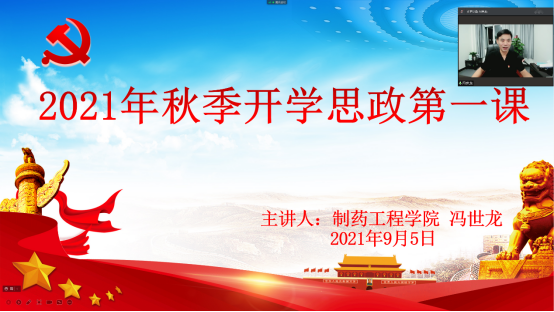 为贯彻落实习近平总书记关于“大思政课”建设的重要指示精神,深入学习贯彻习近平总书记“七一”重要讲话精神,开展党史学习宣传教育,讲好全省上下防汛救灾、疫情防控的河南故事,9月5日,制药工程学院组织全院师生同上2021年秋冬开学思政第一课。党总支书记冯世龙,院长段鸿斌,党总支副书记李娜分别以“学习‘七一’重要讲话精神 弘扬伟大抗‘疫’精神”、“深入学习贯彻习近平总书记‘七一’重要讲话精神”和“驻抗洪防疫一线 展信农学子风采”为主题进行线上授课,全院师生收看了本次课程。