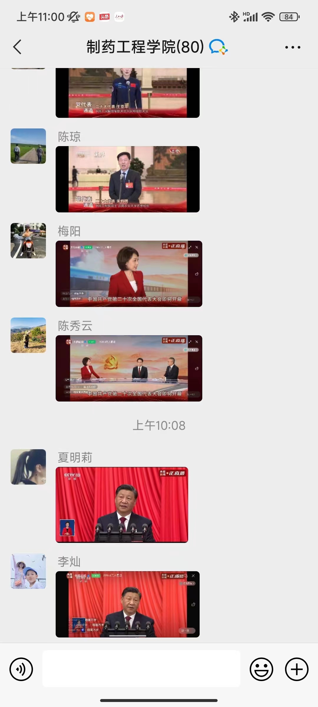 10月16日,中国共产党第二十次全国代表大会在北京开幕,习近平总书记代表第十九届中央委员会向大会作题为《高举中国特色社会主义伟大旗帜,全面贯彻习近平新时代中国特色社会主义思想,弘扬伟大建党精神,自信自强、守正创新,踔厉奋发、勇毅前行,为全面建设社会主义现代化国家、全面推进中华民族伟大复兴而团结奋斗》的报告。制药工程学院党总支组织师生收看了开幕会直播。