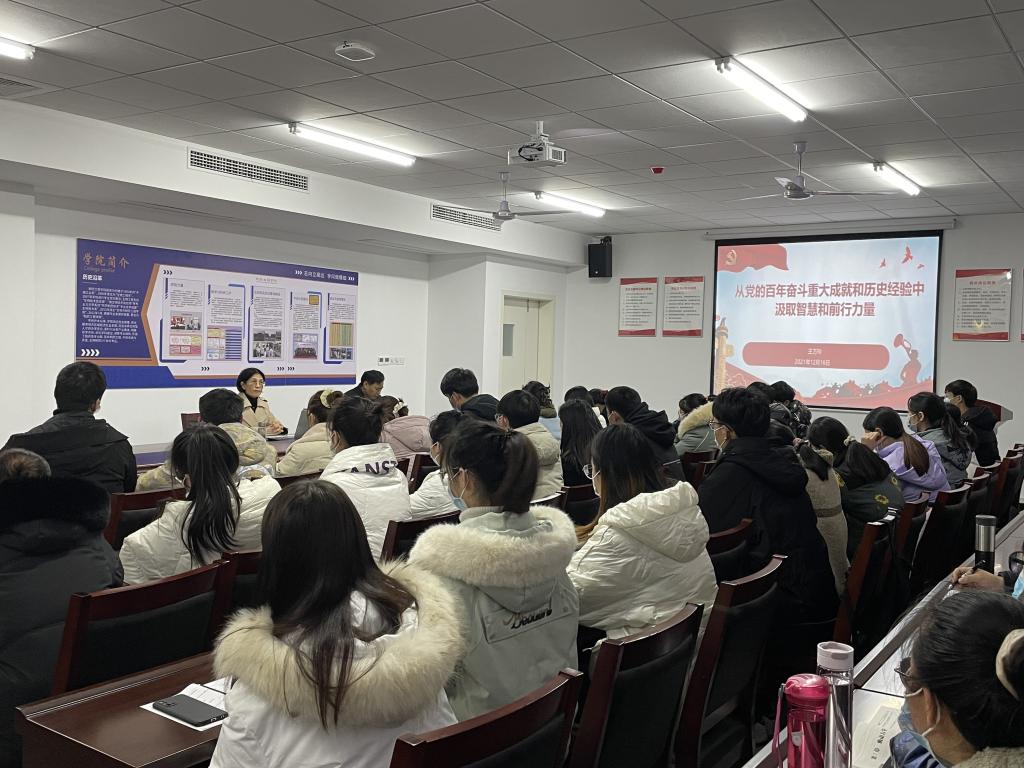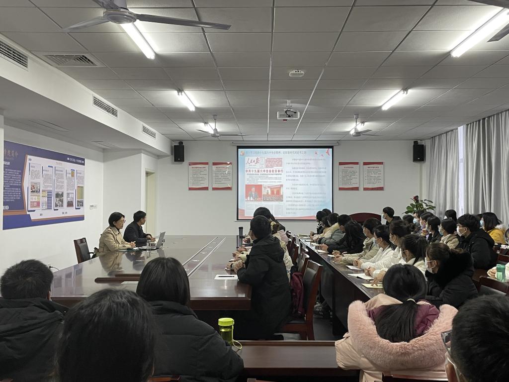 12月16日下午,校党委委员、副校长王万玲在实验楼E315为制药工程学院学生党员作学习十九届六中全会精神主题报告。报告会由制药工程学院党总支书记冯世龙主持,全体学生党员参加。