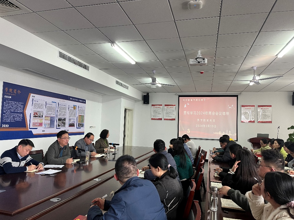 3月19日下午,药学院党总支在实验楼E315召开教职工大会,传达学习2024年全国两会会议精神,学习由党总支书记魏宗烽领学。