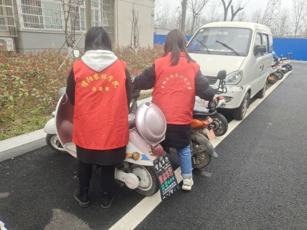 本次活动在餐厅门口、宿舍楼周边展开。我院志愿者在活动区积极地扶起倒地车子,整理摆放位置,让原本杂乱停放的车子变得整齐有序。并主动引导同学们有序停放,向同学们传导整齐有序在一定程度上可减小车子的损坏和丢失,也可以使校园环境更为美观舒适的理念。