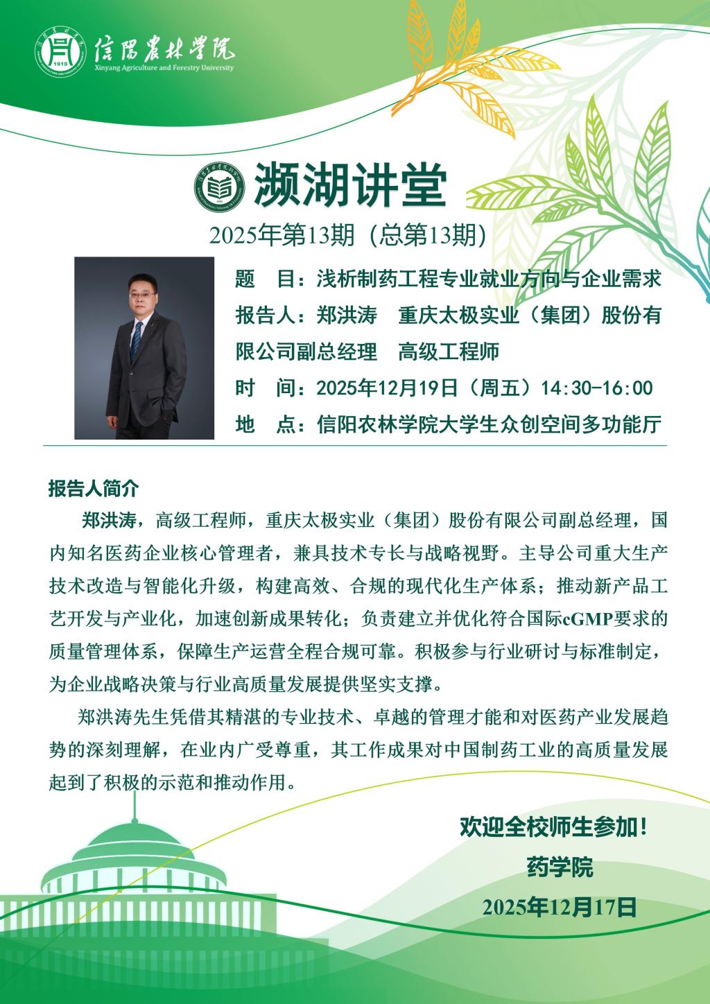 【学术报告】“濒湖讲堂”第13期:浅析制药工程专业就业方向与企业需求