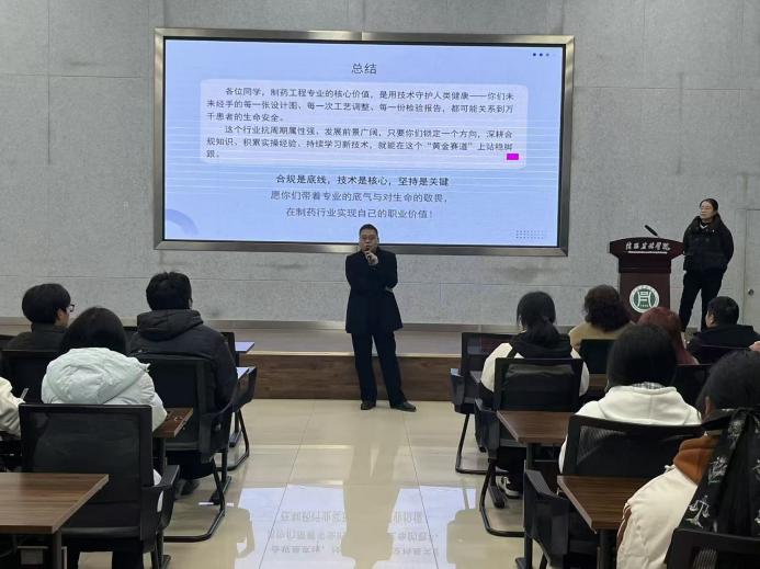 此次系列讲座既有专业建设的前沿思考,又有职业发展的实操指导,为师生搭建了与行业专家深度交流的平台。我院师生表示,讲座内容详实、针对性强,不仅明晰了专业发展方向,更为个人成长与职业规划提供了有力指引。未来,药学院将持续深化校企合作,丰富学术交流形式,为培养高素质制药工程人才奠定坚实基础。(撰稿/李明 摄像/药学院新媒体中心)