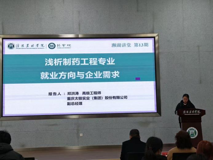 为深化制药工程专业教学改革,帮助学子明确职业发展方向,我院近日成功举办“濒湖讲堂”系列学术讲座。重庆太极实业(集团)股份有限公司副总经理郑洪涛先生、汇智工程科技股份有限公司武汉分公司副总经理袁巍先生两位高级工程师受邀主讲,我院数百名师生参与,收获颇丰。