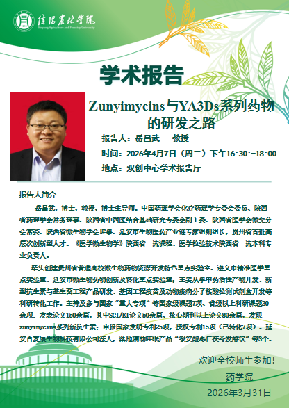 【学术报告】“濒湖讲堂”第15期:Zunyimycins与YA3Ds系列药物的研发之路