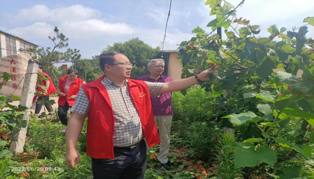 接着,在河南省大汉菲尔酒业有限公司葡萄种植基地,特派员查看了葡萄生长及管理情况,发现酿酒葡萄长势喜人,但田间杂草清理不及时,防鸟设施依然没有解决。特派员提醒企业相关工作人员,要认真做好除草、病虫害防治及防鸟设施的建设等系列措施。