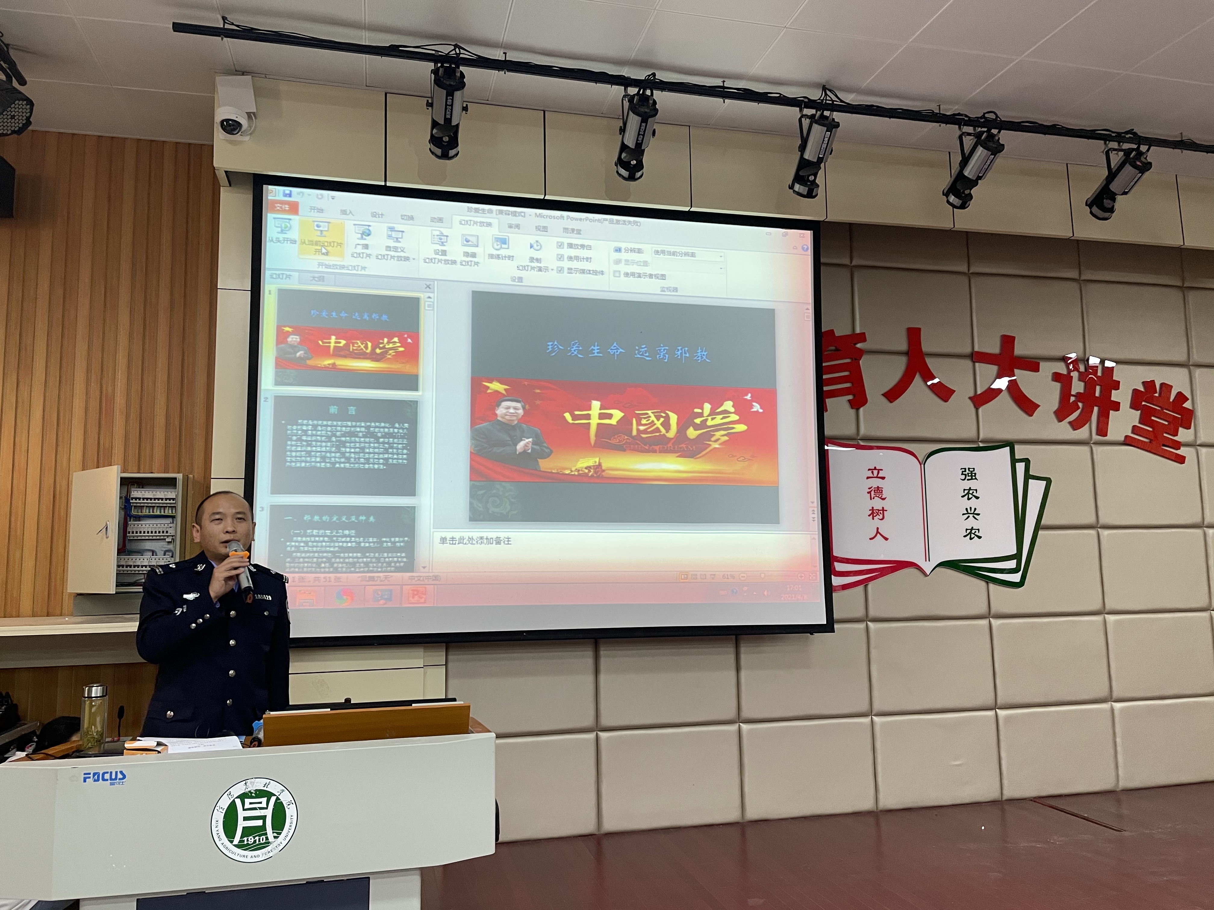 随后,市公安局国保支队的喻警官、陈警官,分别就国家安全和反邪教等方面工作为学生们做了专题讲座。他们通过现实案例,生动形象地介绍了妨碍国家安全的各种情况,以及“法轮功”、“全能神”等邪教的严重危害性,并给出一些我们在实际生活中可以做的防范措施,最后呼吁大家遇到问题要及时与公安部门联系、交流,共同维护国家安全。
