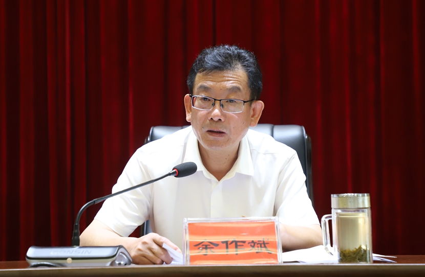 党委书记余作斌作动员讲话。他指出,本次会议的主要任务是坚持以习近平新时代中国特色社会主义思想为指导,深入学习贯彻习近平总书记在“不忘初心、牢记使命”主题教育工作会议上的重要讲话精神,全面落实中央、省委工作安排,对学校开展“不忘初心、牢记使命”主题教育进行动员部署。就开展好“不忘初心、牢记使命”主题教育,余作斌提出三点意见:一是提高政治站位,深刻领会开展主题教育的重大意义。开展主题教育是强化理论武装、加强党的政治建设的必然要求,是推进全面从严治党、净化政治生态的迫切需要,是以党的建设高质量推动学校事业高质量发展的内在要求。二是聚焦目标任务,确保主题教育取得预期效果。要准确把握总要求,守初心要“诚”,担使命要“勇”,找差距要“准”,抓落实要“狠”。要准确把握具体目标,聚焦理论学习有收获,学懂弄通做实习近平新时代中国特色社会主义思想,聚焦思想政治受洗礼,坚决做到“两个维护”,聚焦干事创业敢担当,着力推进事业发展,聚焦为民服务解难题,践行党的根本宗旨,聚焦清正廉洁作表率,营造风清气正的政治生态。要准确把握重点措施,坚持把学习教育、调查研究、检视问题、整改落实贯穿始终。三是强化使命担当,严格落实开展主题教育的主体责任。态度要正,过程要实,效果要好。