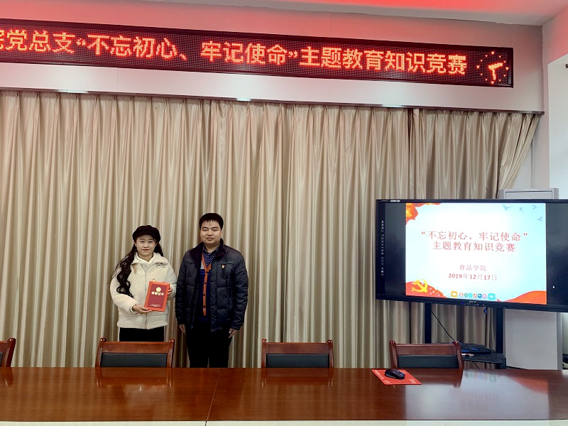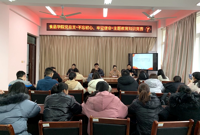 为充分调动学生党员学习积极性和主动性,加深学生党员对主题教育的认识,扎实推进“不忘初心、牢记使命”主题教育,12月17日,食品学院在1B206举办“不忘初心、牢记使命”主题教育党员知识竞赛。此次竞赛由学院党总支副书记刘涛,专职辅导员王子伟、易蕾、黄卉卉老师担任评委,学生党支部全体正式党员和预备党员参赛。