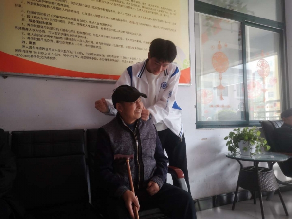 在敬老院,在场的每一位党员都积极热情,党员志愿者为老人送上精心准备的面包,牛奶等慰问品,他们与老人们唠起了家常,关心他们的生活和身体情况,倾听他们的心声,并细心嘱咐要注意饮食起居,他们搀扶老人上下楼梯,陪老人聊天,给老人按摩身体。他们的到来,给养老院带来了欢声笑语。虽然相处的时间很短,但是很多同学都与老人结下了难忘的感情。
