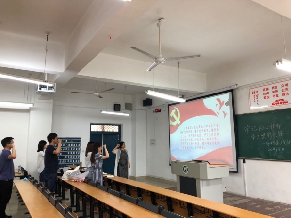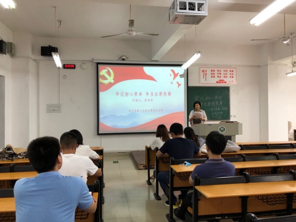为庆祝中国共产党建党99周年,重温党的光辉历程,进一步增强党支部的凝聚力和战斗力,激发党员教师以更加饱满的热情投入到教学和科研工作中,7月1日下午,财经学院审计学教工党支部在2教103室开展主题党日活动。支部书记荣国萱同志为支部党员上了《守初心,担使命》专题党课,支部全体党员参加。