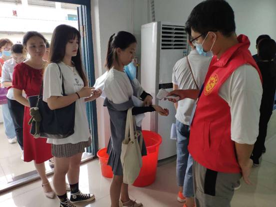 活动中,志愿者们身着红背心,引导考生进入考场,提醒考生戴好口罩,督促考生做好考试中间的个人防护,挨个检查体温,大家齐心协力,分工合作共保考试秩序安定有序。志愿者们不怕辛苦,考后深入考区帮助清理白色垃圾,进楼道和考场清扫考生遗留下的矿泉水瓶和烟头,协助消杀,把疫情防控的具体措施落实在实际行动中。志愿者们表示:“我们是财务相关专业的党员学生,良好的考试环境需要大家共同营造,作为党员应该志愿服务在保障疫情防控的第一线,广大考生对志愿服务也十分理解和支持,我们将来也要参加会计考试,今天我为考生服务,将来会有更多人为我们服务。”