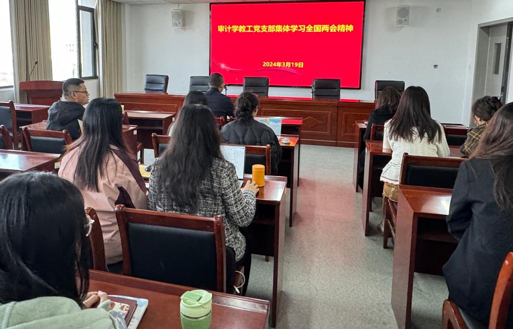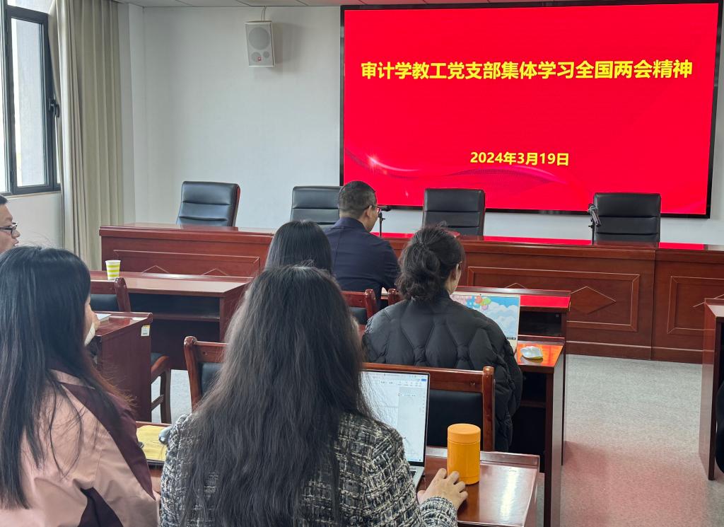 为了更好地把握全国两会精神的核心要义,将之转化为具体工作实践,管理学院审计学教工党支部于3月19日在双创中心408开展了集体学习全国两会精神的活动。会议由审计学教工党支部书记仲照东主持,审计学支部党员教师参会。