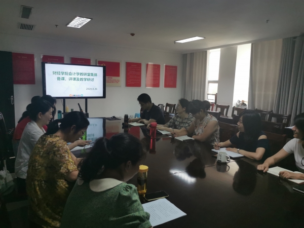 为贯彻落实邢勇校长在财经学院调研指导精神,进一步加强师德师风和教风建设,切实提高教师教学能力和业务水平,财经学院会计学教研室于8月26日下午在行政楼821组织开展了集体备课、评课和教学研讨活动,活动由会计学教研室主任叶楠主持,副院长史雅洁出席。