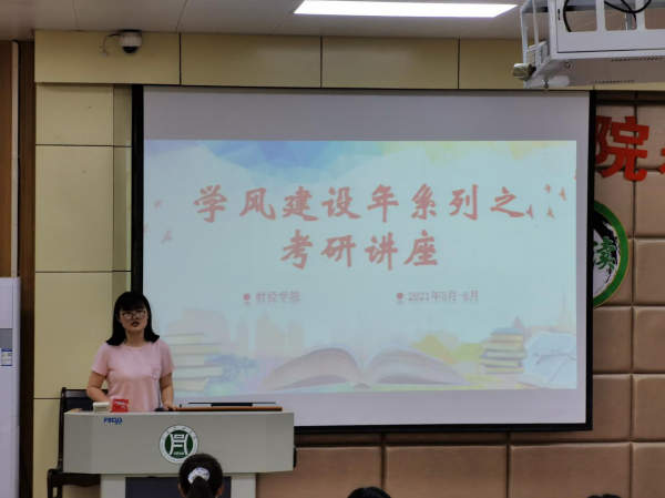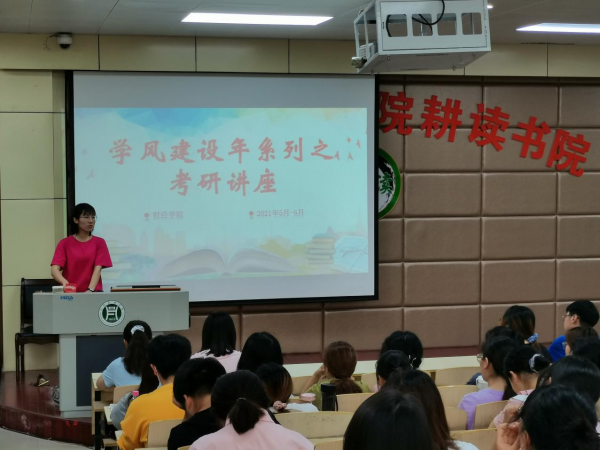 为增强我院学生对考研学数学习的了解,合理安排考研规划。财经学院于2021年6月1日在二教举办了学风建设年系列活动之考研数学讲座。本次活动由财经学院大学生自律委员会学风建设部主办,专职辅导员吴昊老师莅临指导。此次考研讲座特意邀请几位考研成功上岸的学长学姐为同学们分享经验,全院同学积极参与。