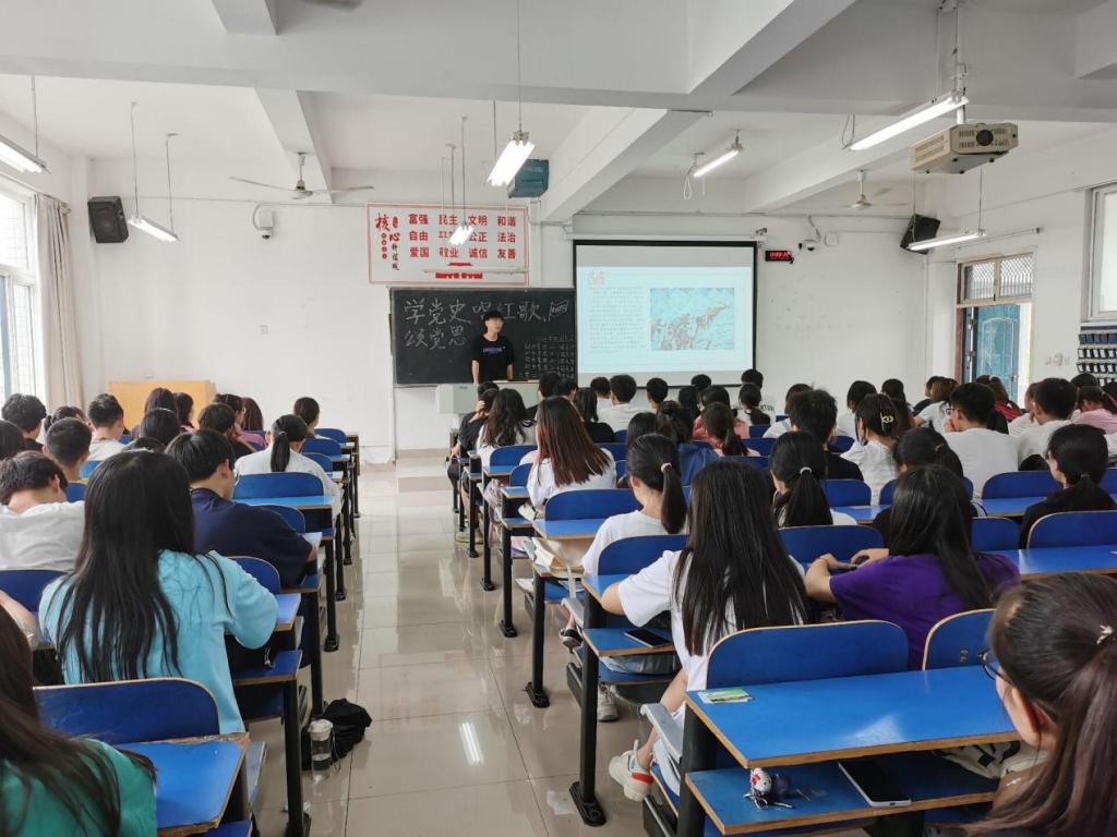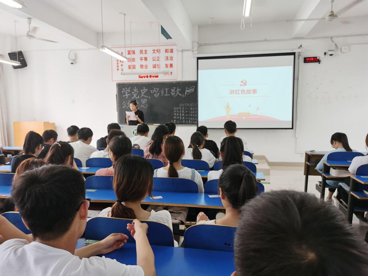 各班班团活动主要分为三个阶段开展:第一阶段,主讲人介绍“学党史、唱红歌、颂党恩”的主要内容;第二阶段,班级学生代表宣讲党在中国革命、社会主义建设、改革开放等各个历史时期的典型事例;第三阶段,引导同学们全面了解和正确认识党的光辉历史、伟大成就、宝贵经验、光荣传统和优良作风,共同合唱《没有共产党就没有新中国》、《祖国不会忘记》等红色歌曲。