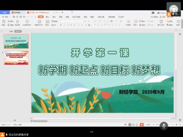 9月7日-8日,财经学院各班在辅导员老师的带领下召开“新学期 新起点 新目标 新梦想”主题班会。