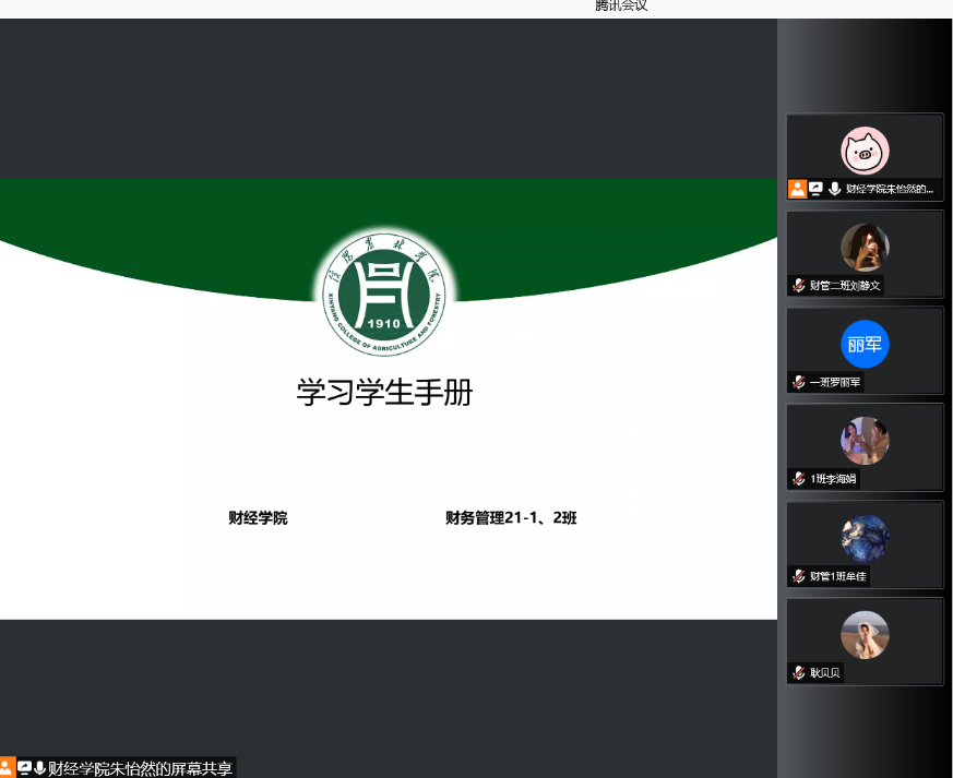 按照学校《2021级新生入学教育安排表(线上)》的要求,在9月16日,财经学院辅导员通过线上平台为21级全体新生开展了“学习学生手册”入学教育活动,结合疫情防控需要,引导学生熟悉学校有关学生日常管理、学籍管理、组织发展、评优评先的相关规定,使新生更快地融入校园生活。