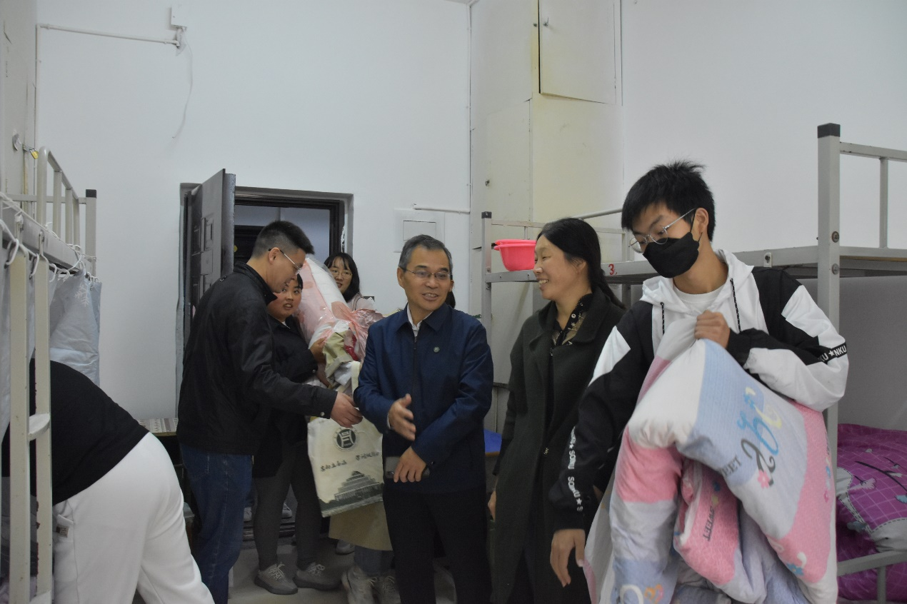 为进一步了解新生的入校状况,加强师生交流,增进家校关系,切实解决新生入学时所遇到的实际问题,帮助他们更好地适应大学生活,10月8日中午,校党委副书记王庆兵、财经学院党总支书记朱长明、副书记王艳平及部分辅导员代表前往宿舍看望刚报到入校的2021级新生及部分学生家长。