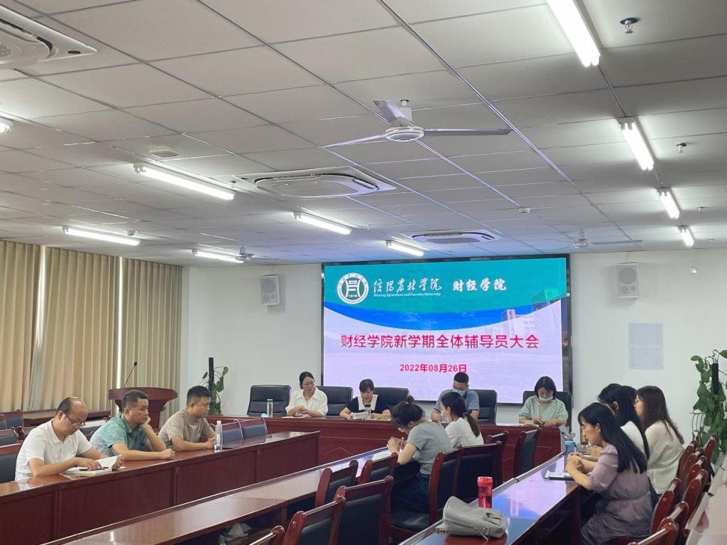 为贯彻落实学校学生工作精神,进一步加强辅导员队伍建设,做好新学期学生管理工作,财经学院于2022年8月26日在双创楼会议室召开新学期辅导员工作大会,会议由财经学院党总支书记朱长明主持,院长郭春林、副书记王艳平、副院长张立恒及全体辅导员老师参加会议。