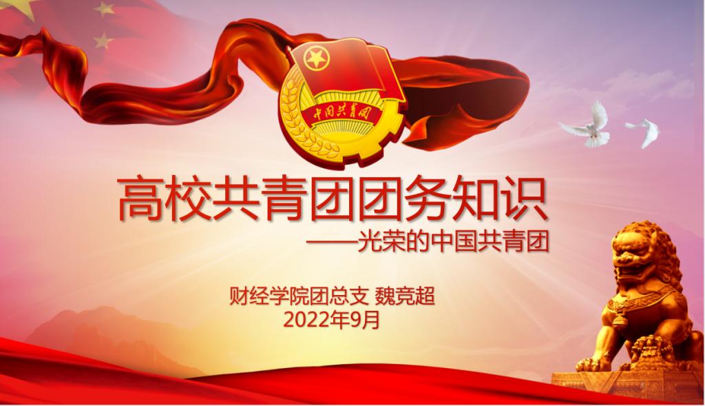 为深入开展理想信念、爱国主义教育,激发同学们学习团知识的积极性,让同学们更加深入了解团的历届代表大会,对团知识有更多地了解,做好青年的思想引领。2022年9月15日,财经学院组织了以“光荣的中国共青团”为主题的讲座,此次讲座由财经学院团总支书记魏竞超主讲,2022级全体新生。