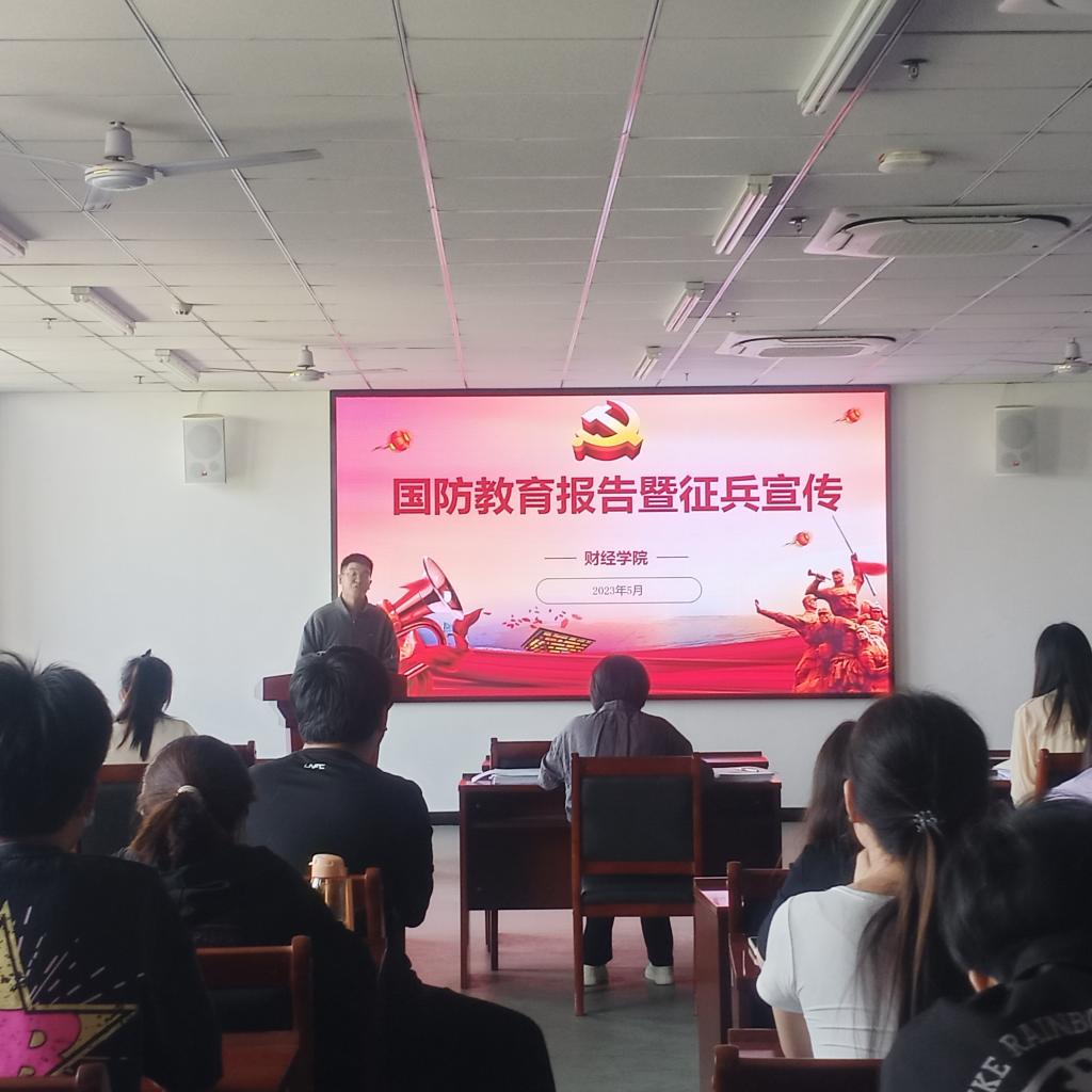 为增强当代大学生爱国主义情怀,掌握必要的国防知识,自觉履行国防义务。5月12日上午,财经学院举办国防教育暨大学生征兵宣传报告会,本次报告会由财经学院武装专干吴昊主讲,各年级各专业学生代表共同聆听报告。
