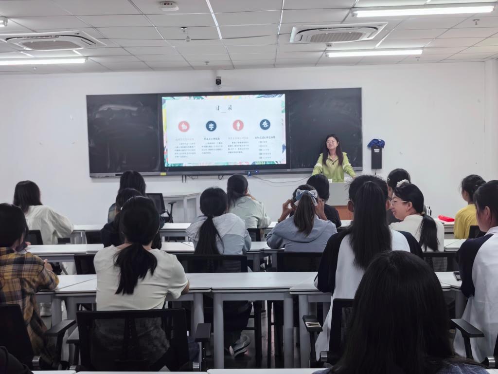 詹老师从学生个人的性格特点、生活习惯和行为、学业压力、社会环境等不同角度来分析影响大学生心理健康的因素,并引导大学生树立正确的自我认知,积极悦纳自己。同时,詹老师也鼓励同学们去发掘事物积极的一面,多多给世界积极的解释,常常给自己积极的暗示,以健康的心态面对每一天!