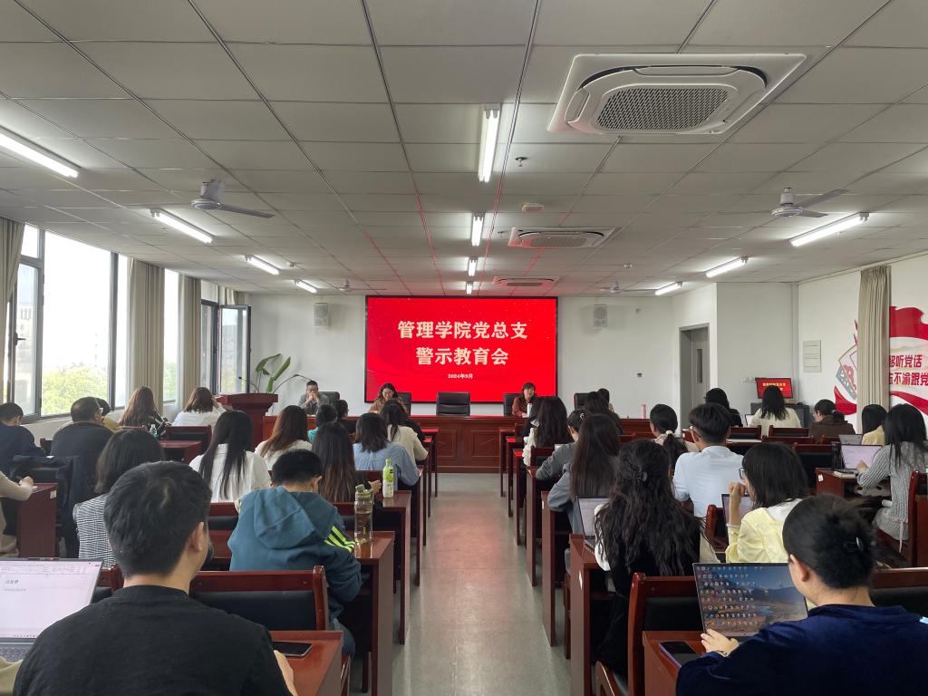 2024年9月24日,管理学院党总支在双创楼408会议室召开警示教育会,开展廉政理论专题学习和观看警示教育片。