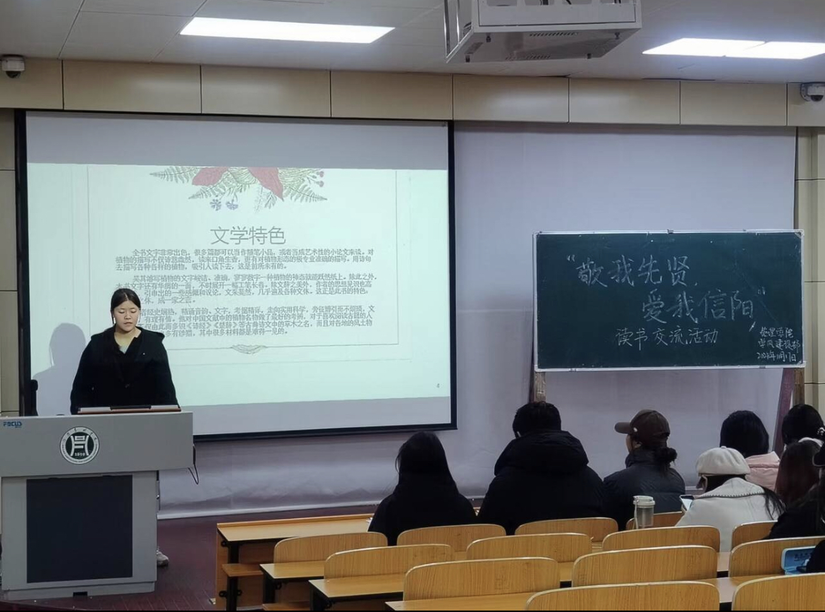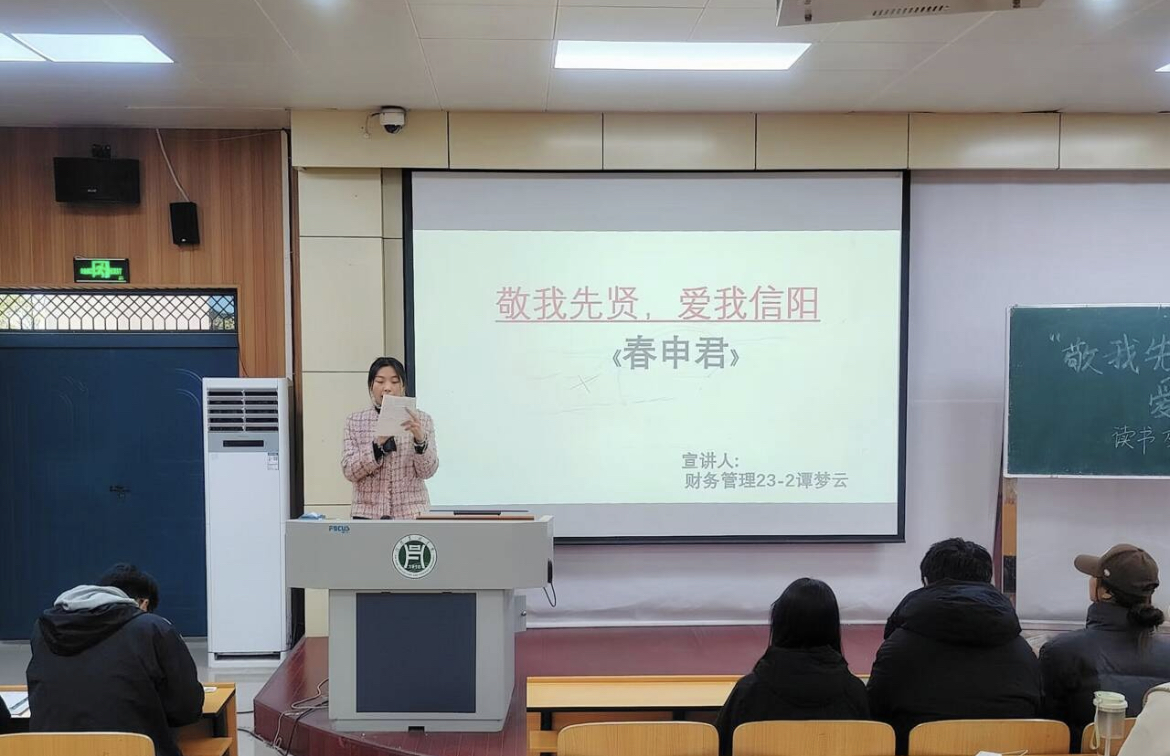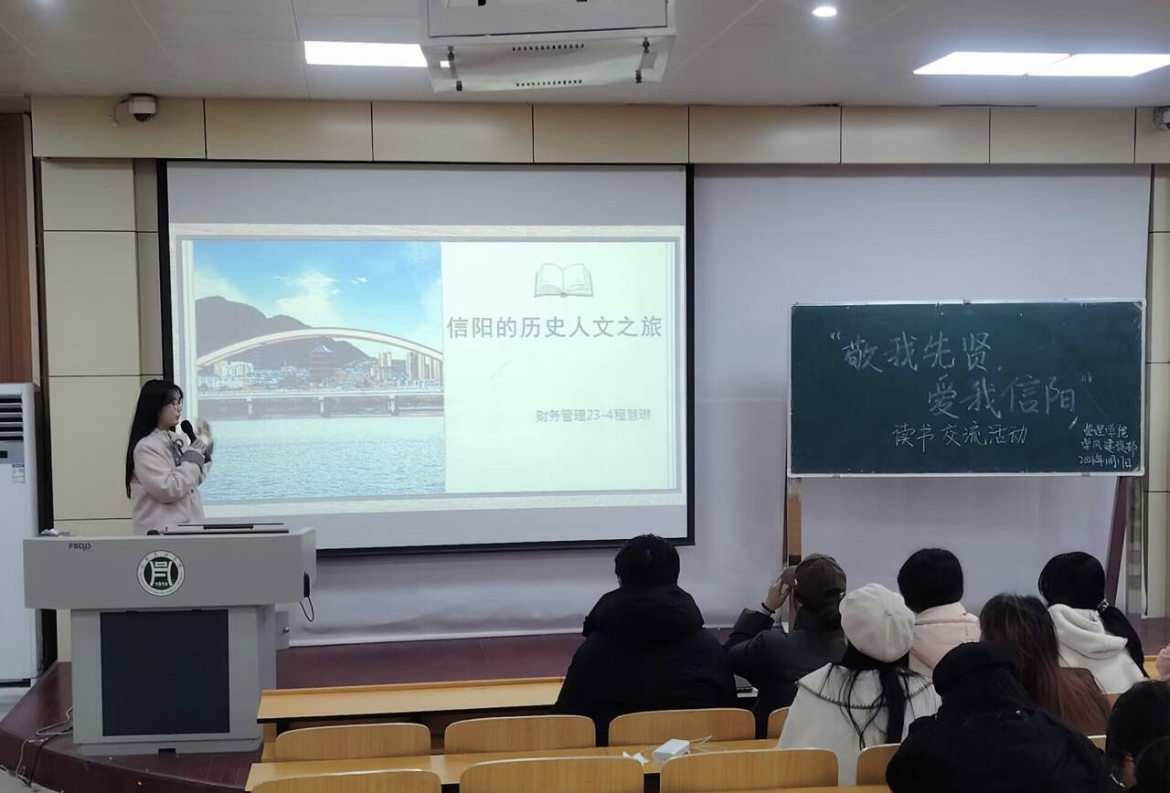 为进一步营造全民阅读的良好氛围,引导同学们更深入地了解信阳的历史文化,共同探索书籍带来的美好,11月17日我院在二教204教室开展“敬我先贤 爱我信阳”主题读书分享会初赛。