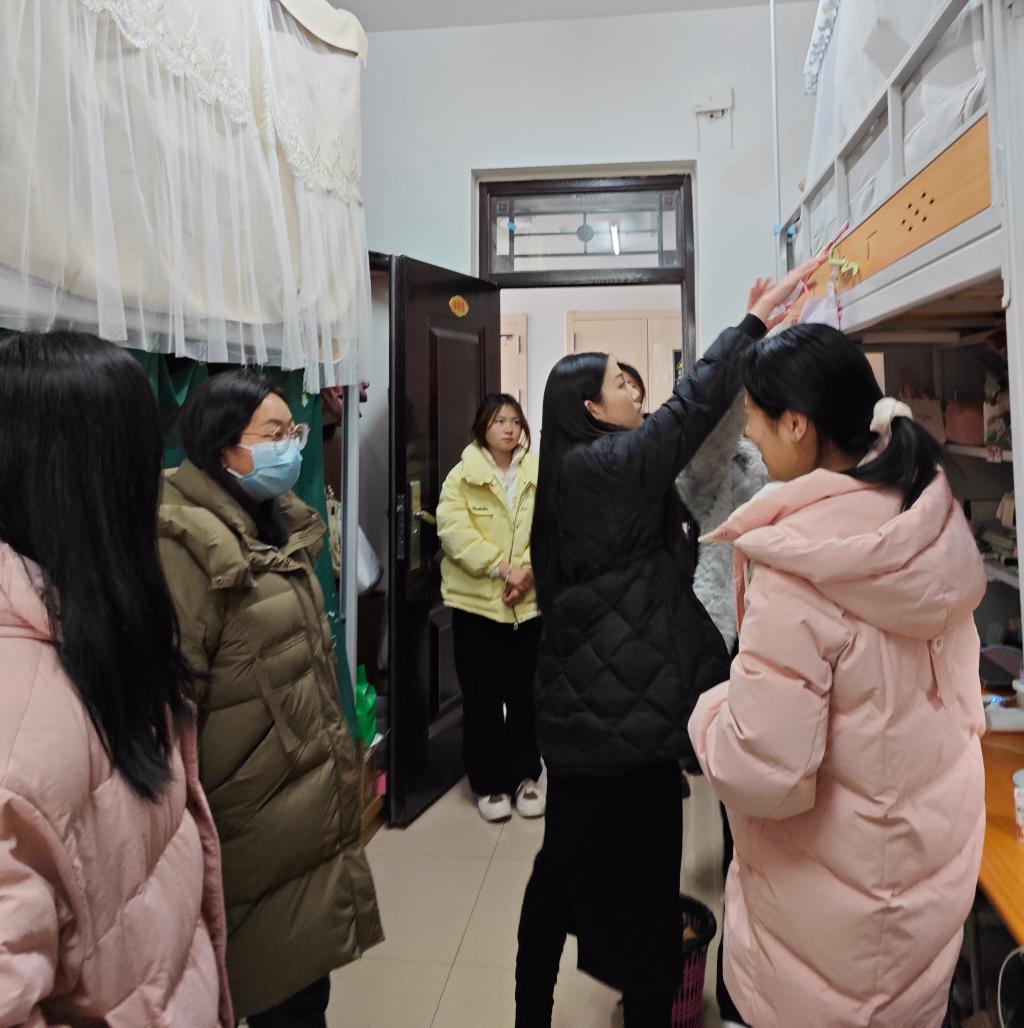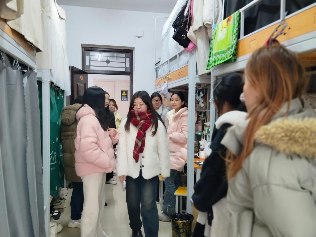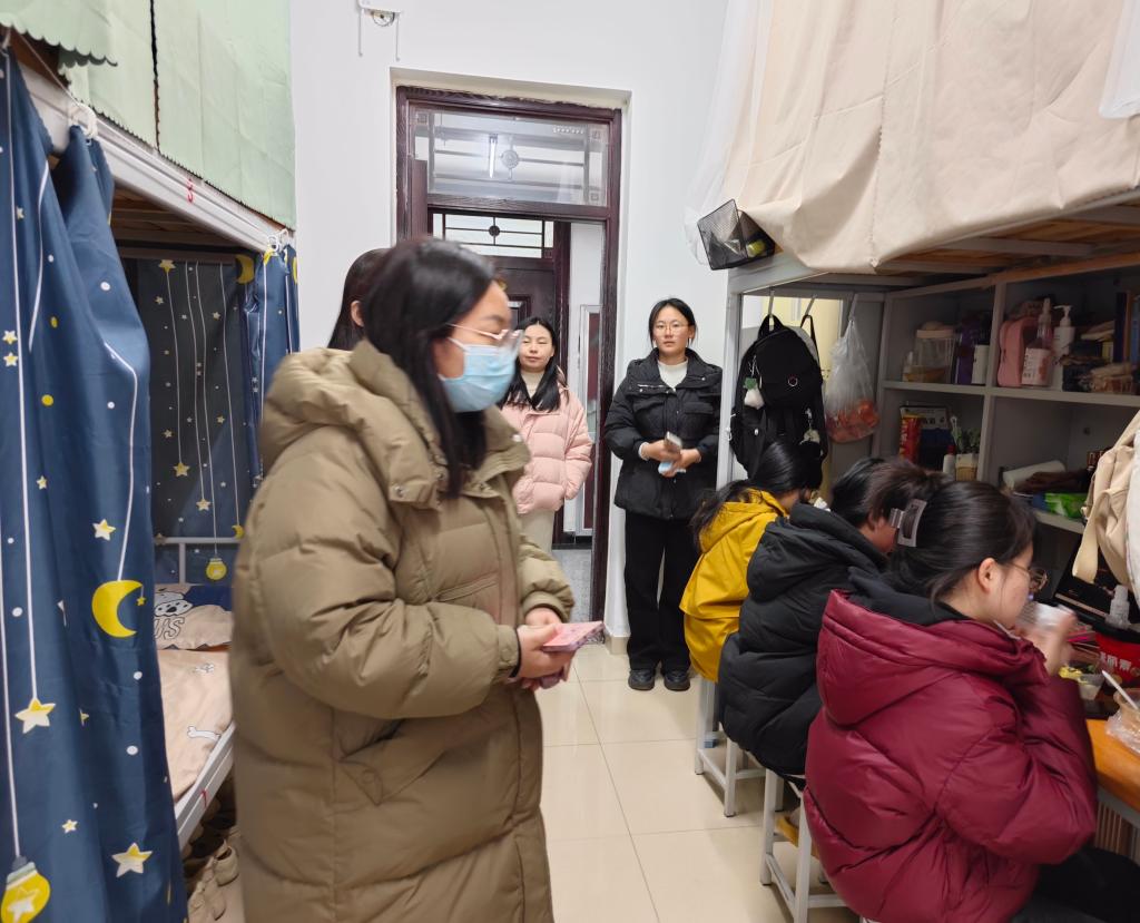 走访过程中,学院领导、老师们与同学们亲切交谈,详细询问同学们的假期生活、返校行程以及新学期学习计划,细心了解同学们在宿舍生活中遇到的具体问题,认真听取同学们对宿舍环境、设施设备等方面的意见和建议。同时,仔细查看宿舍环境卫生、消防安全等情况,叮嘱同学们要增强安全意识,不违规使用电器,注意用水用电安全,保持宿舍整洁,营造良好的学习生活环境。此外,还勉励同学们要珍惜大学时光,刻苦学习,努力提升自身综合素质,树立远大理想,争做新时代有为青年,为实现中华民族伟大复兴的中国梦贡献青春力量。