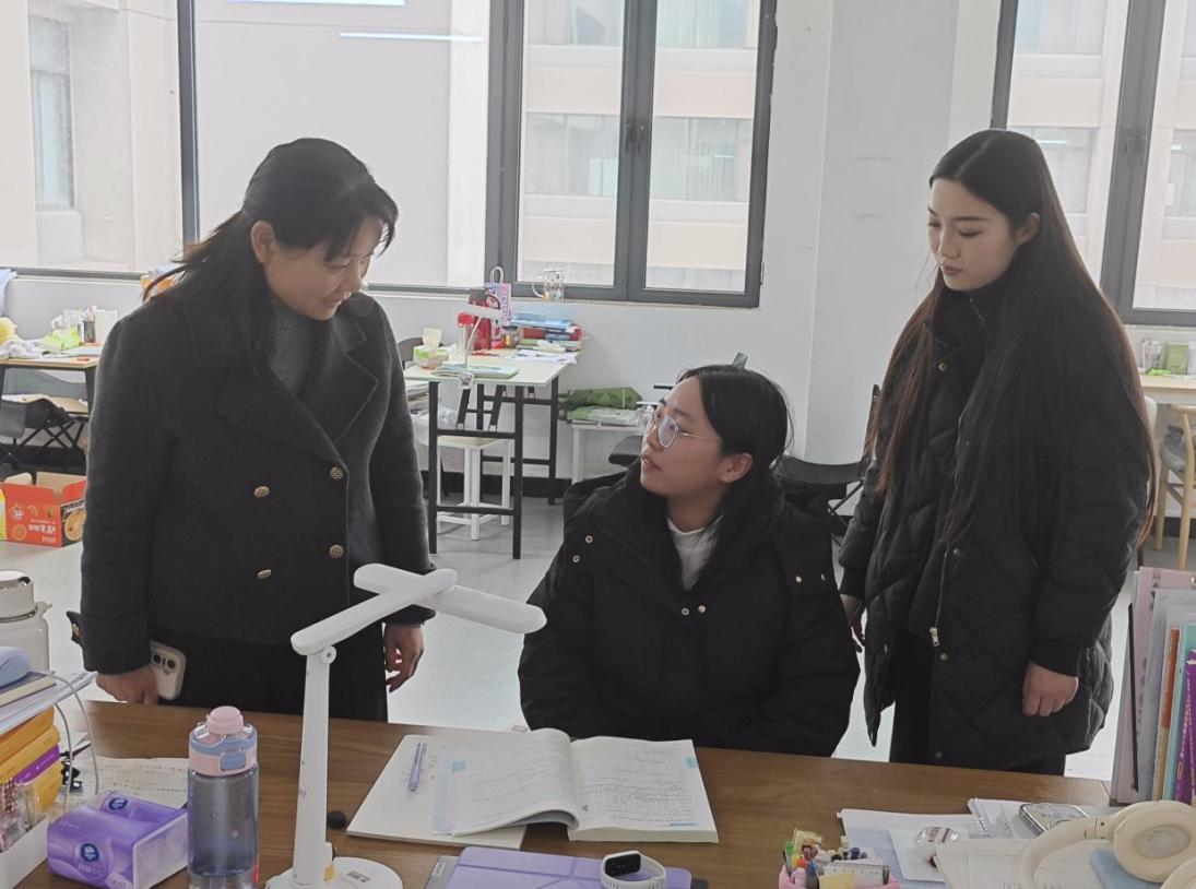走访期间,老师们轻步进入自习区域,实地察看学习环境,详细询问同学们的复习进度及学习生活需求,耐心倾听同学们在学习规划、压力调节等方面的困惑,并就大家关心的问题给予了耐心指导。王艳平勉励同学们:在最后不到三十天的关键期,务必树立坚定的信心,保持积极的心态,合理安排时间,做到劳逸结合,高效安排计划,为自己的考研之路画上圆满的句号。