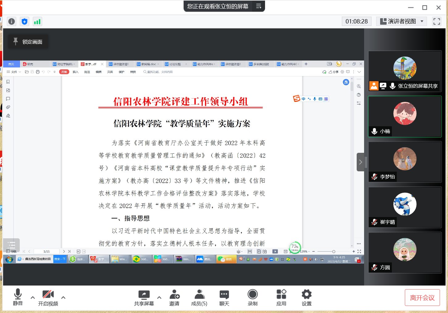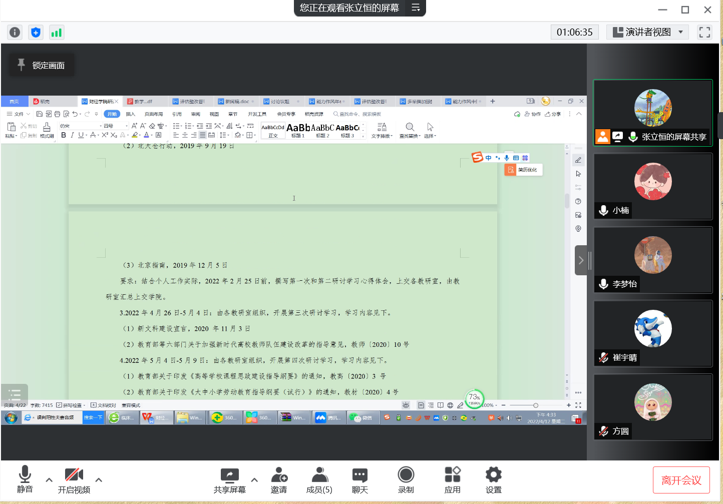 为进一步落实《beat365在线平台官网“教学质量年”实施方案》,结合财经学院总体部署和工作实际,4月6日,财经学院召开了线上教学质量年活动专题会议,财经学院副院长张立恒、教研室主任及部分专业教师参加了会议。