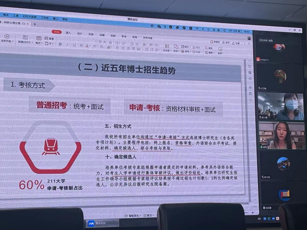 凌霄从个人考博经历和学术研究方向等出发,分享了自己的考博经验和科研心得。围绕博士招生时间线、近五年博士招生趋势、科学有效的考博方法等方面展开精彩报告,并详细分享了从论文选题、撰写到投稿的相关经验,比如大量的文献阅读、广泛的知识积淀、前沿的计量方法、持续的行动是产出高质量科研成果的重要保障等。对此,我院青年教师纷纷表示受益匪浅。
