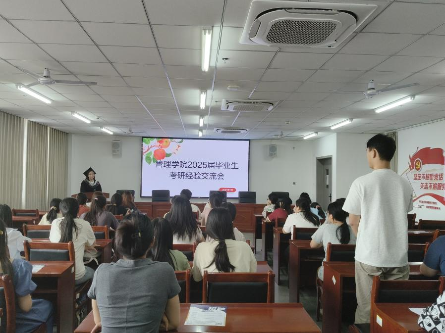 为助力我院学生明确考研目标,增强考研升学信心,掌握科学有效的备考策略。管理学院于5月28日在双创楼408会议室举办“2025届毕业生考研经验交流会”。本次活动由管理学院就业专员荣翊贝老师主持,2025届考取研究生的毕业生代表为学弟学妹们分享了考研经验和体会,学院有考研意向的学生参与交流会。