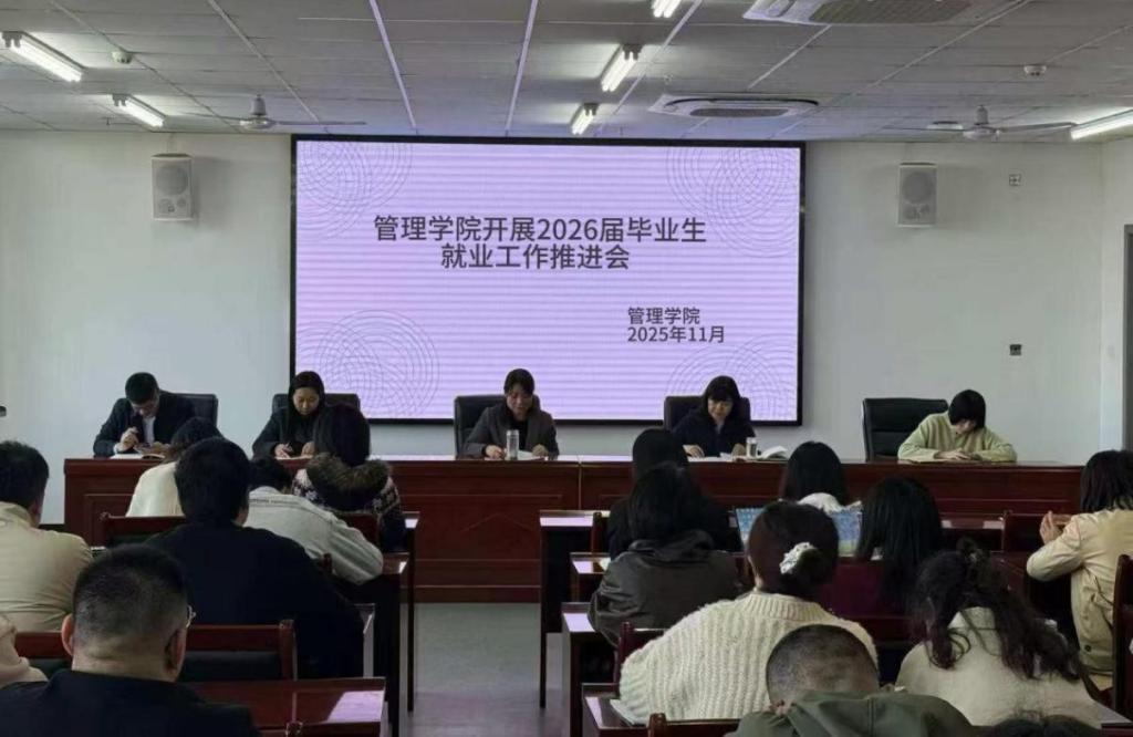 为深入贯彻落实国家关于高校毕业生就业工作的决策部署,切实推进2026届毕业生就业服务提质增效,管理学院于11月27日在双创楼408会议室召开2026届毕业生就业工作推进会。会议由院党委书记王艳平主持,学院领导班子、专兼职辅导员及专任教师参加此次会议。