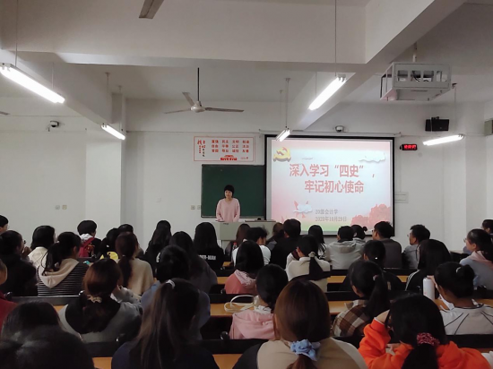 为积极响应习近平总书记的号召,激励广大青年学生党史、新中国史、改革开放史、社会主义发展史的学习。10月29日,财经学院各专业各班在辅导员老师的分别开展了“学习四史,不忘初心”的主题班会。