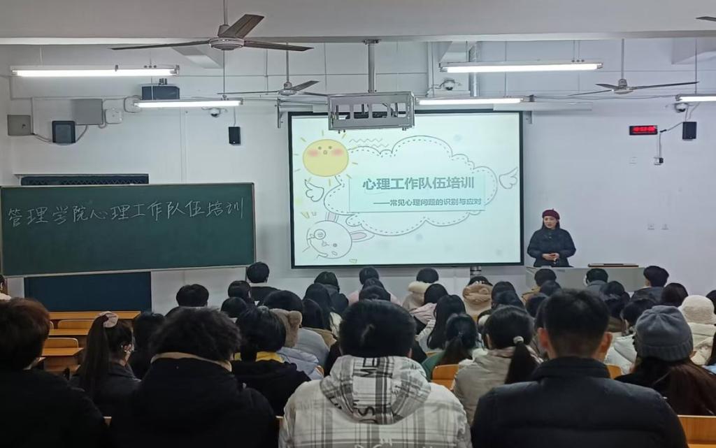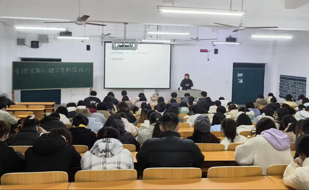 为进一步提升我院心理工作队伍的专业性,发挥朋辈互助的力量,帮助班级心理委员及宿舍心理信息员明晰自己的工作职责,提升业务水平,管理学院于12月15日在二教206开展“心理工作队伍培训”,会议由管理学院心理专员荣翊贝主讲,院学生会干部、心理委员、宿舍心理信息员参与此次培训。