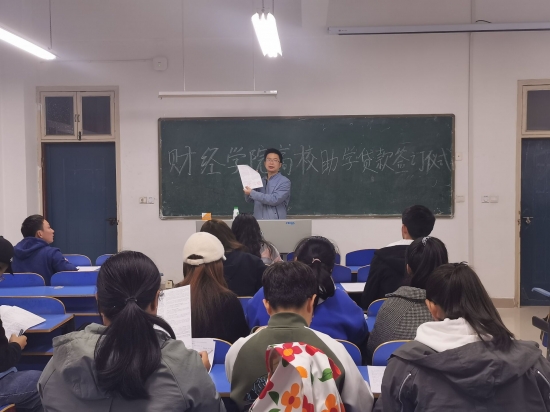 2020年11月4日,财经学院于1教A201举行了2020年国家助学贷款合同签约暨诚信宣誓仪式,会议由财经学院资助专员毛帅主持,2020年度申请国家助学贷款的同学以及财经学院勤工部同学参加了此次诚信签约仪式。