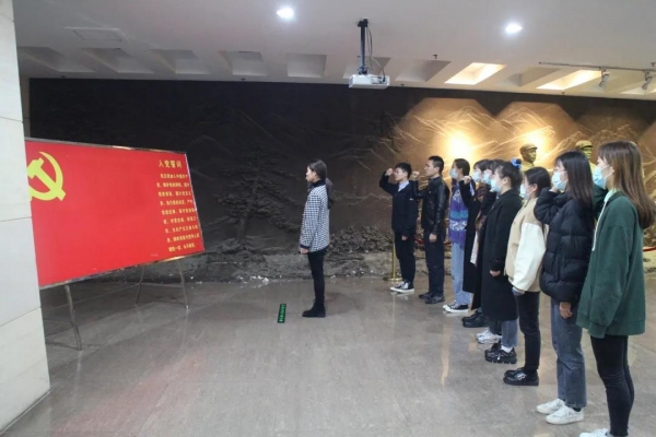 走进纪念馆,面对鲜红的党旗,党员们举行了一次重温入党誓词的活动。党员们的誓言铿锵有力,每一句都让人热血沸腾。那是他们对党和人民作出的庄严承诺,也是自我的行为准则。一心一意跟党走,为共产主义奋斗终身!