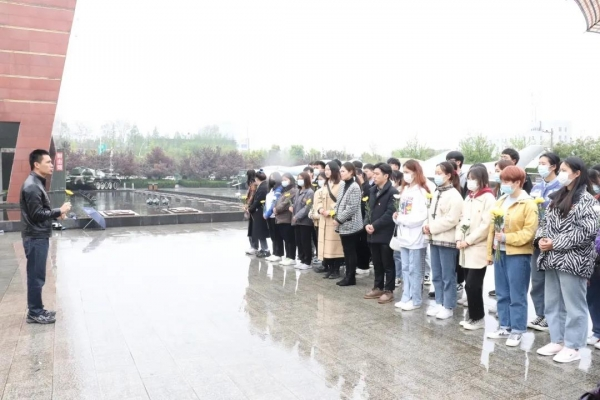 细雨绵绵,以寄哀思。参观结束后,大家来到纪念馆雕塑前。学生代表李佳龙诵读英雄祭文,对烈士表示祷祝。团总支书记王子浩再次同大家一起向英雄致敬。碧海山岚歌烈士,春风雨绿祭清明。大家低首哀悼,然后满怀敬意的献上鲜花。
