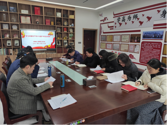 会上,黄双杰首先明确了本次会议的主题,带领全体成员通读了《中国共产党第十九届中央委员会第六次全体会议公报》。接着,黄松副书记针对大家的学习情况进行了点评和指导,强调学习目的要明确,内容重于形式,不可浅尝辄止,浮于表面,全体教师要认真学习、深刻领会十九届六中全会精神内涵,将学习精神转化为能力,并付诸实际行动。最后,黄松副书记针对学习不到位的地方进行了补充和重点串讲,对我党历史上通过的两次决议的背景和意义、十九届六中全会通过决议的重要性和历史地位、党的百年奋斗重大成就和历史经验的“三个需要”、“五大历史意义”、“十大历史经验”等进行了深刻剖析。会后,大家纷纷表示,通过黄书记的指导,大家对党的十九届六中全会精神有了更深刻的领悟。(黄双杰,罗金蕾)
