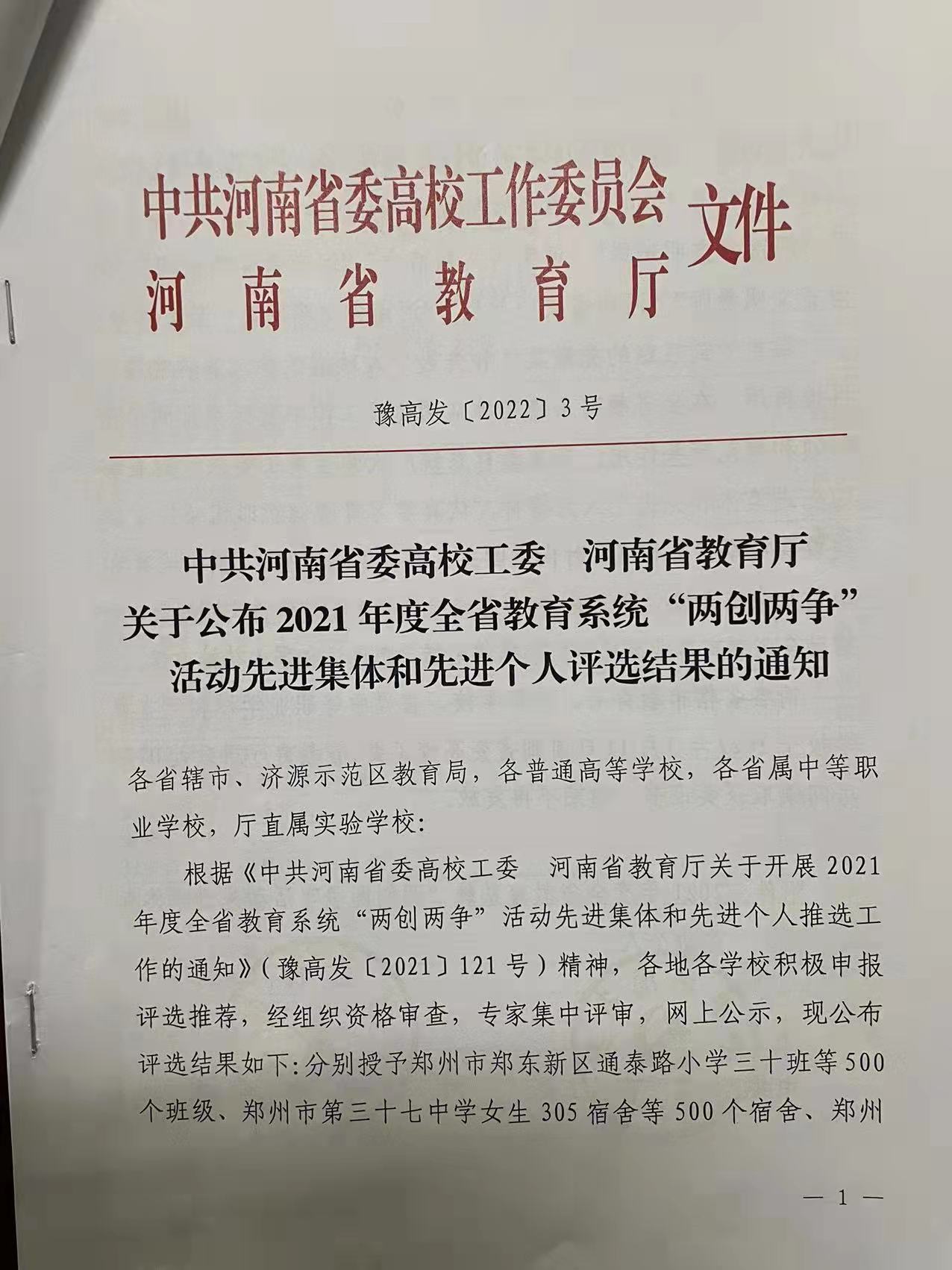 日前,中共河南省委高校工委、河南省教育厅印发了《中共河南省委高校工委 河南省教育厅关于公布 2021 年度全省教育系统“两创两争”活动先进集体和先进个人评选结果的通知》(豫高发〔2022〕3 号),公布了2021年度全省教育系统“两创两争”活动先进集体和先进个人评选结果。茶学院党总支副书记、茶文化与营销教研室教师朱建梅被授予“河南省文明教师”,茶学(茶文化与营销方向)2019级的蒋艳群同学被授予“河南省文明学生”荣誉称号。