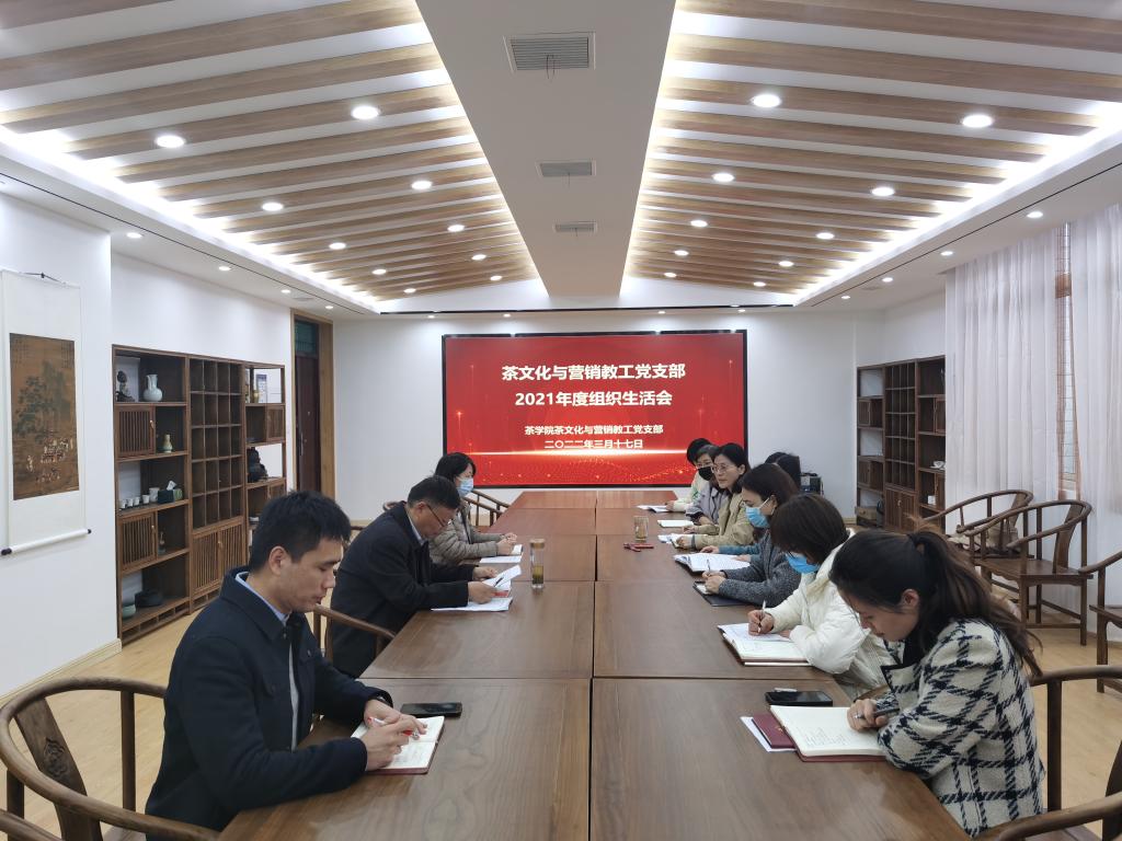3月17日下午,茶文化与营销教工党支部召开2021年度组织生活会并开展民主评议党员工作,党支部全体党员参加,茶学院党总支副书记朱建梅以普通党员身份参加组织生活会,党总支宣传委员兼青年委员王子浩列席。