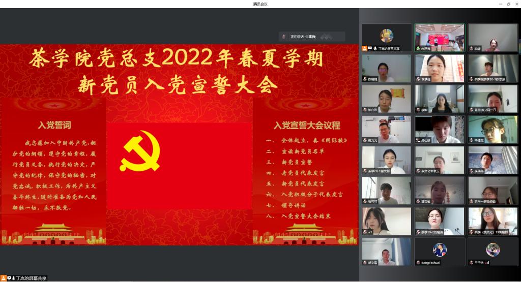 茶学院党总支组织2022年春夏学期新党员线上+线下入党宣誓大会