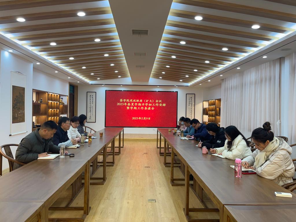 2月9日下午,茶学院在1C201召开了党政联席(扩大)会议2023年春夏学期开学初工作安排暨学期工作务虚会,科级以上干部参加了此次会议,会议由院长、党总支书记郭桂义主持。会议安排了开学初等近期工作,就本学期工作思路和重点工作进行了讨论。