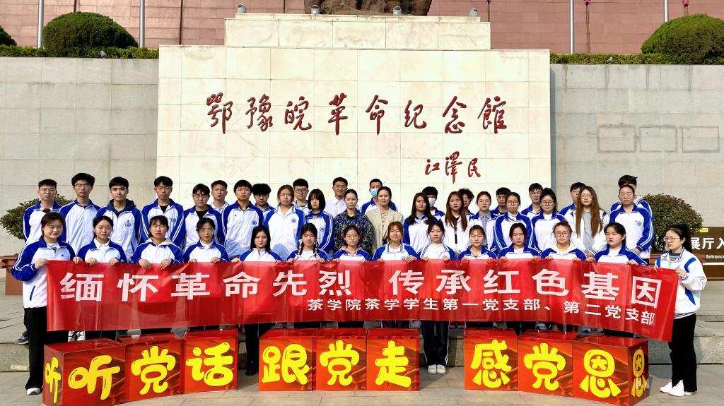 3月31日清晨,茶学院学生第一党支部和第二党支部书记丁岚、梁玉洁带领学生支部的党员和部分积极分子来到鄂豫皖革命纪念馆开展以“缅怀革命先烈,传承红色基因”为主题教育,追寻先烈足迹,领悟红色文化,传承红色基因,发扬大别山精神。学生党员和积极分子在党支部书记的带领下有序参观了鄂豫皖革命纪念馆的“大别风雷星火燎原”、“红军摇篮将军故乡”、“红色苏区共铸辉煌”、“红色土地艰苦卓绝”、“江淮抗战中流砥柱”、“中原突围铁流千里”、“千里跃进伟大壮举”七个主展厅,以及尾厅“将星璀璨”。
