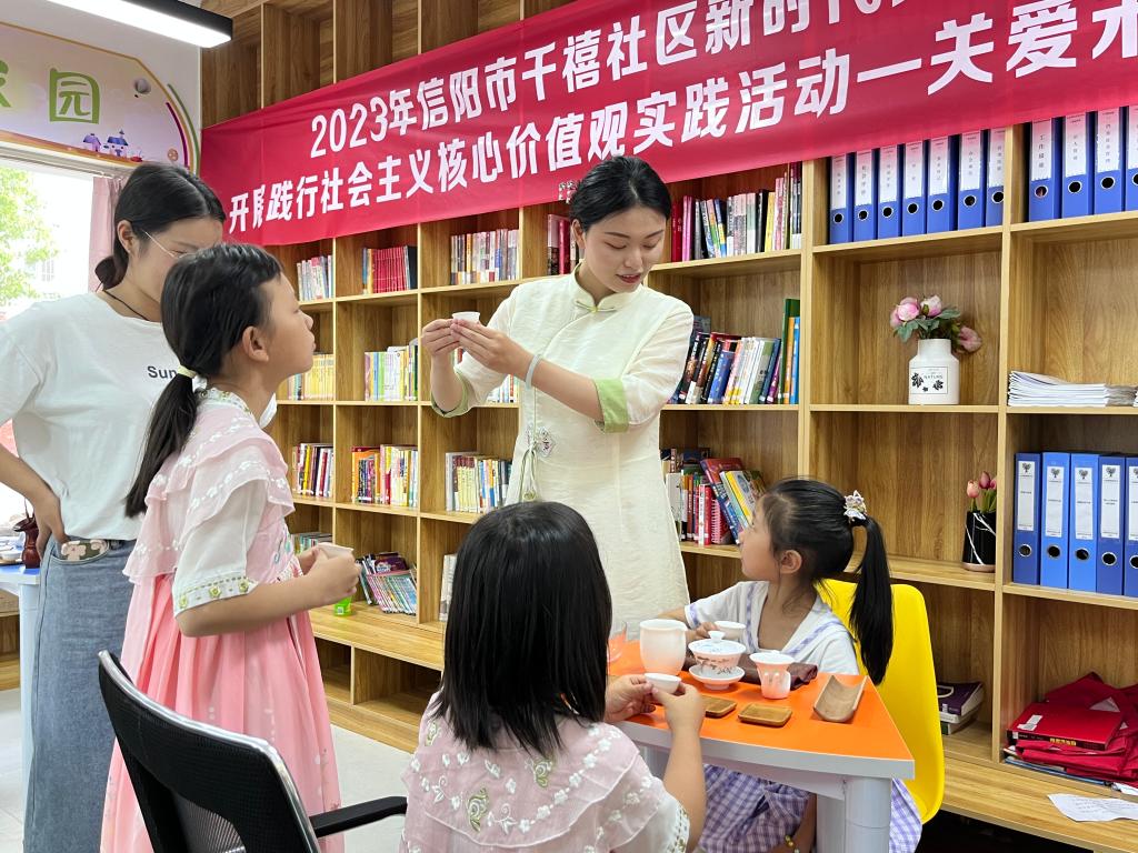 为教育引导学生党员树立远大理想,坚定理想信念,坚定不移听党话、跟党走,并在日常学习生活中发挥好先锋模范作用。5月27日,正值“六一”国际儿童节来临之际,茶学学生第二党支部学生党员前往千禧社区新时代文明实践站开展“茶艺进社区,茶香润童心”少儿茶艺教习活动,活动在千禧社区青翼家园举办。