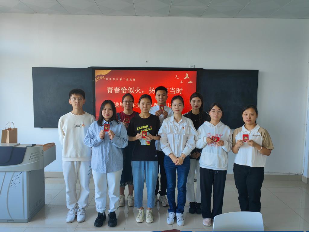 为深入开展学习贯彻习近平新时代中国特色社会主义思想主题教育,进一步加强毕业生党员和支部党员的思想政治教育,提高党性修养,增强组织观念和纪律意识,使党员同志们持续发挥先锋模范作用,6月6日,茶学院茶学学生第二党支部组织开展欢送毕业生党员暨2022-2023学年优秀党员表彰主题党日活动。支部书记梁玉洁及学生党员、积极分子参加活动。